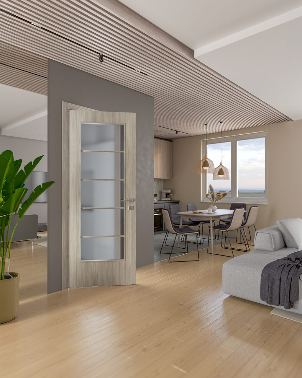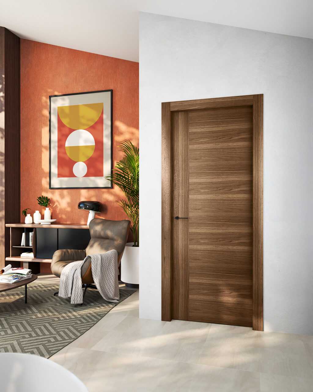 Un interno contemporaneo con alte porte in tranciato precomposto