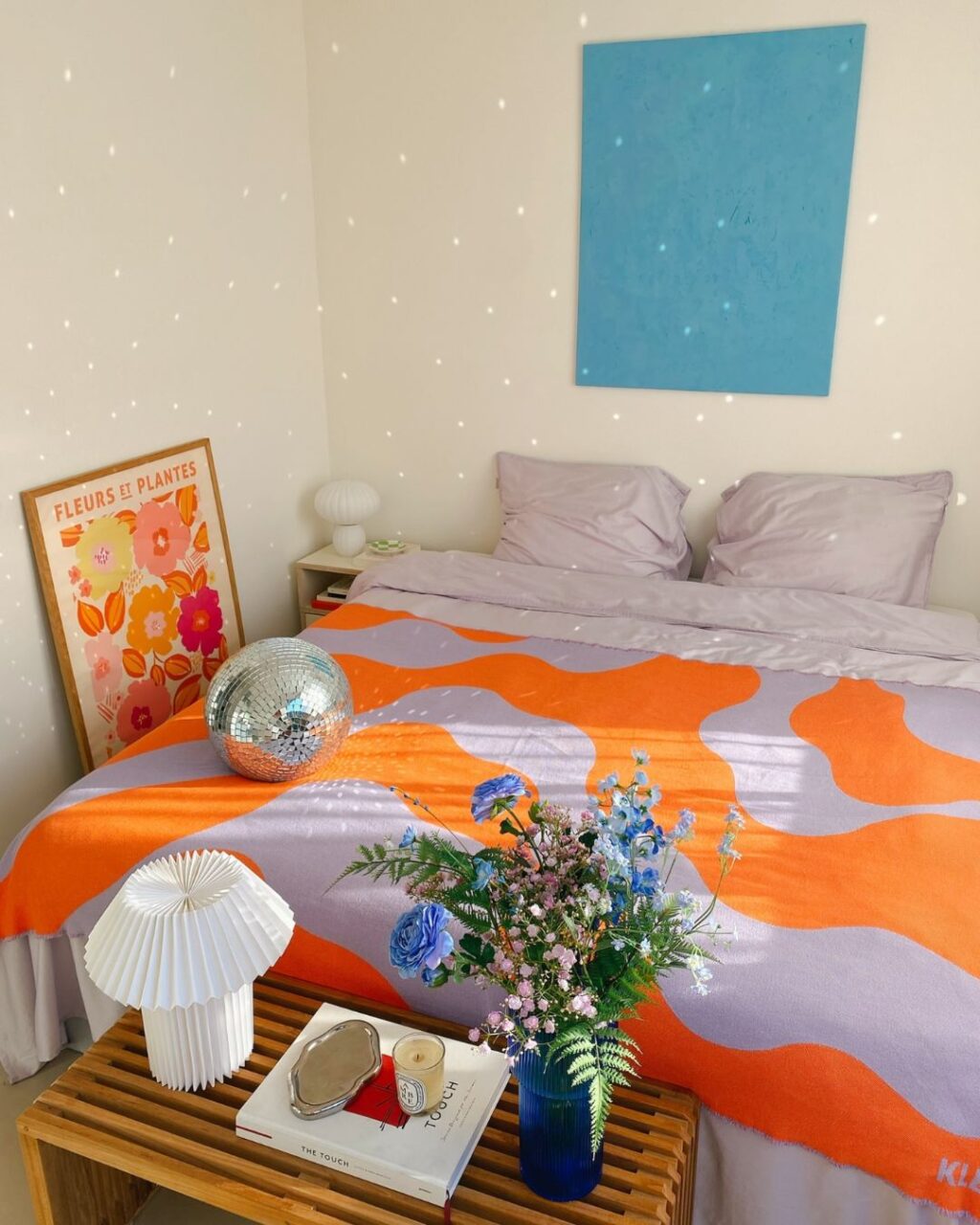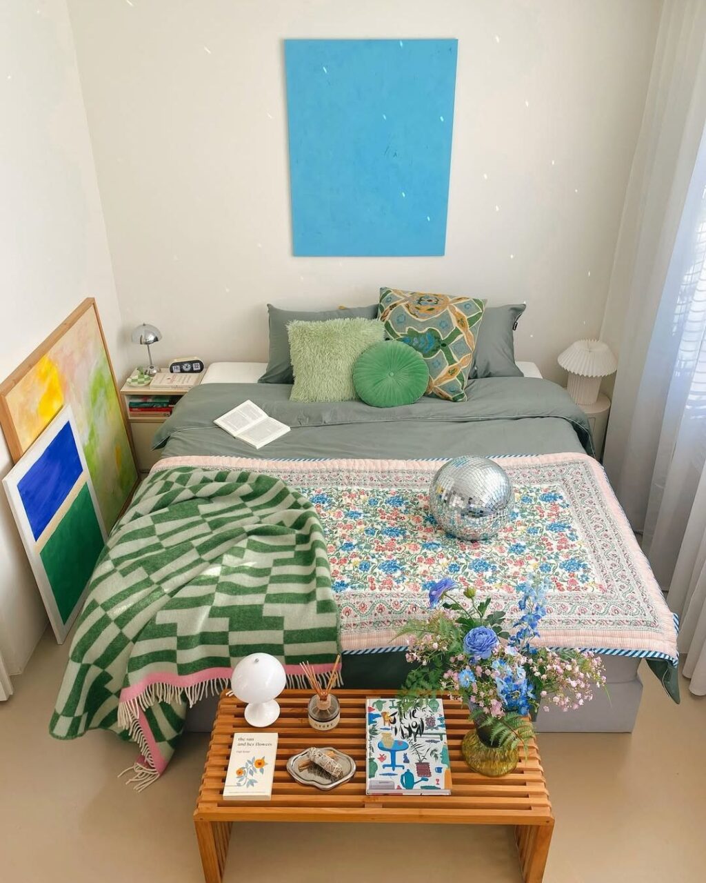 Sopra il lungo tavolo in legno pende una lampada in carta di riso di Ikea, sempre vintage, ma si tratta dei pochi pezzi che, giocoforza, non cambiano posto a rotazione. Per tutti gli altri, domani, sarà facile ritrovarli altrove. Magari in camera, tra creazioni artistiche firmate dagli stessi padroni di casa e intorno a un letto dalle lenzuola Bonsoirs dai colori a loro volta sempre diversi.
